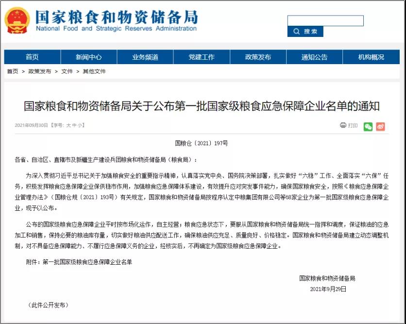 第一批國(guó)家級(jí)糧食應(yīng)急保障企業(yè)名單